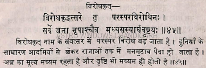In Varsha Prabodh results of Virodh krita Samvatsar is written as follows